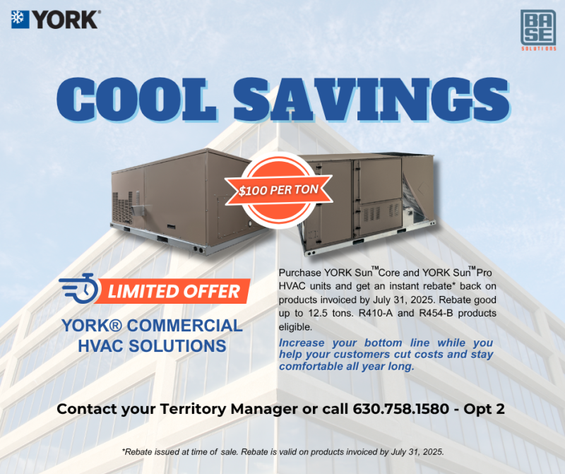 Score an INSTANT REBATE when you purchase YORK® Sun™ Core & Sun™ Pro rooftop units! 💰 100 Rebate per Ton ✅ Available in R-410A & R-454B ✅ Up to ...show more