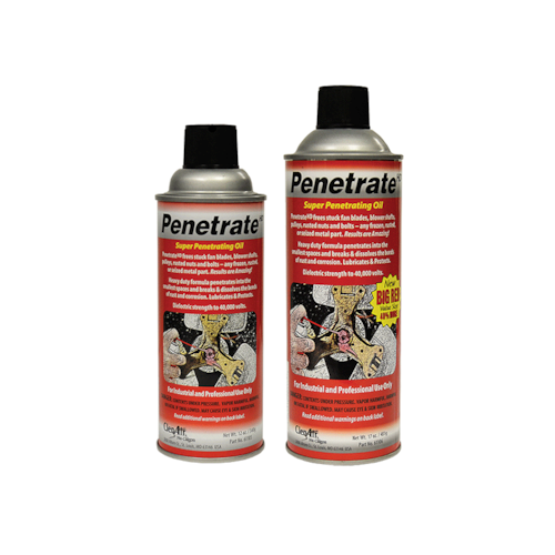 Penetrate HD frees stuck fan blades, blower shafts, pulleys, rusted nuts and bolts any frozen, rusted, or seized metal part! New low surface tension formula penetrates into the smallest spaces and breaks and dissolves the bonds of rust and corrosion. Lubricates and protects metals with a dielectric strength to 40,000 volts (Low VOC formula for California - 31,000 volts). For industrial and professional use only.