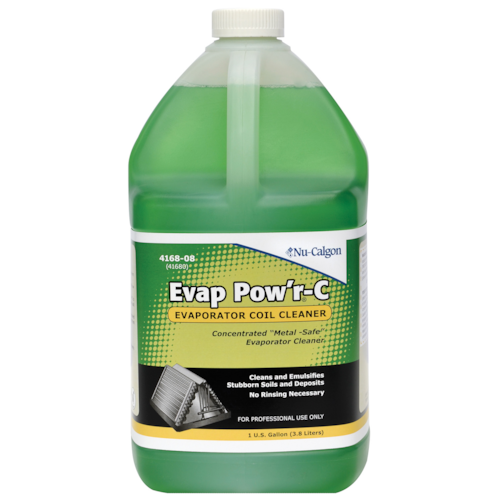 Evap Pow r is a no-rinse product formulated for cleaning indoor evaporator coils. The green-colored, slightly alkaline liquid is metal-safe and therefore will not harm the coil s metal surfaces when left in contact with them even in a no-rinse application. It cleans and emulsifies the most stubborn soils and deposits, and is biodegradable. It is also NSF A1/K4 Registered for Safe for Food Processing.