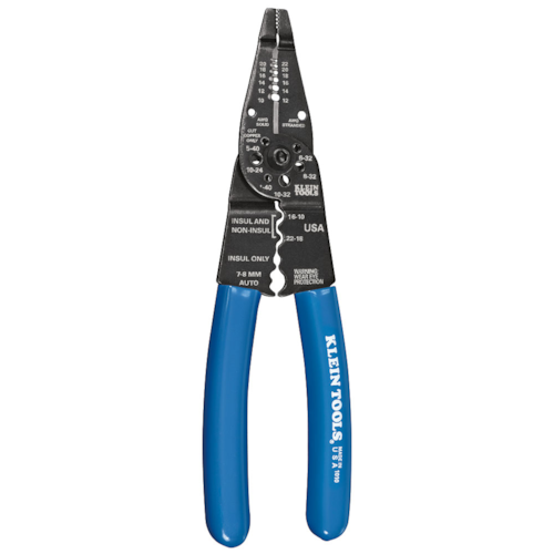 The Klein Tools Wire Stripper Long Nose Multi Tool handles a wide range of functions, from wire and bolt cutting to stripping and crimping. The cutting and stripping holes are positioned in front of the pivot to easily fit into tight spaces. Plastic-covered cushioned handles make this tool comfortable to use.